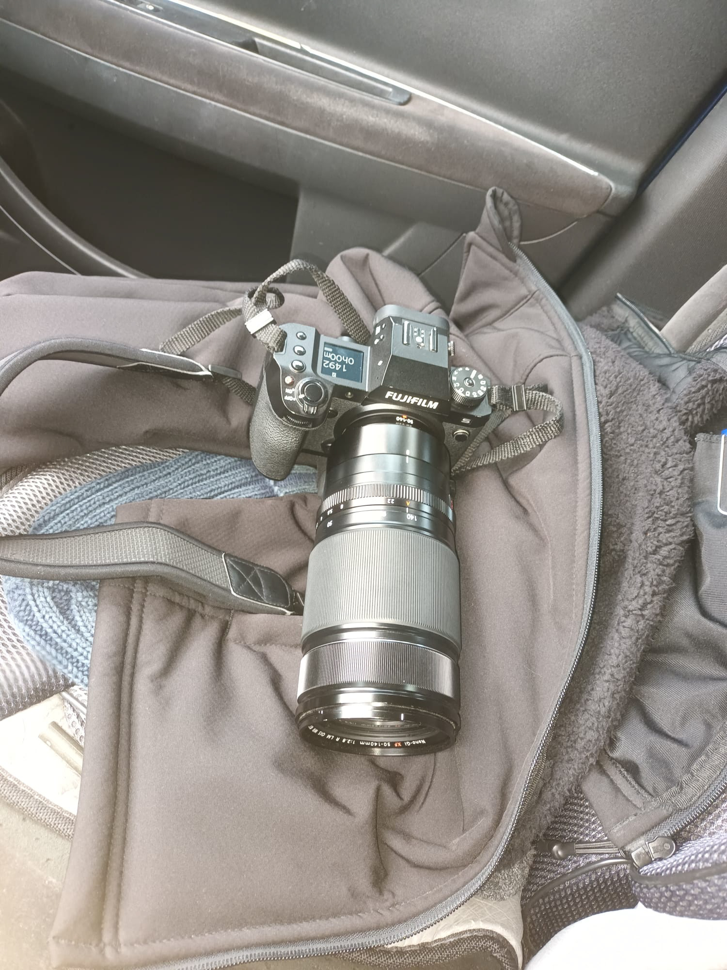 Lastly - the body was a bit uncomfortable in my hands, and the menus... Oh my, and people have been complaining about Sony menus online for years? I wanted to set back button focus like I'm used to using, and even the Fujifilm ambassador that was helping and guiding us couldn't find the setting easily. And even though I didn't try any video, I also know you can't set different custom buttons for photo and video and that's another bummer. One thing I really liked unexpectedly was the little top screen. Pretty cool with the camera turned off especially.